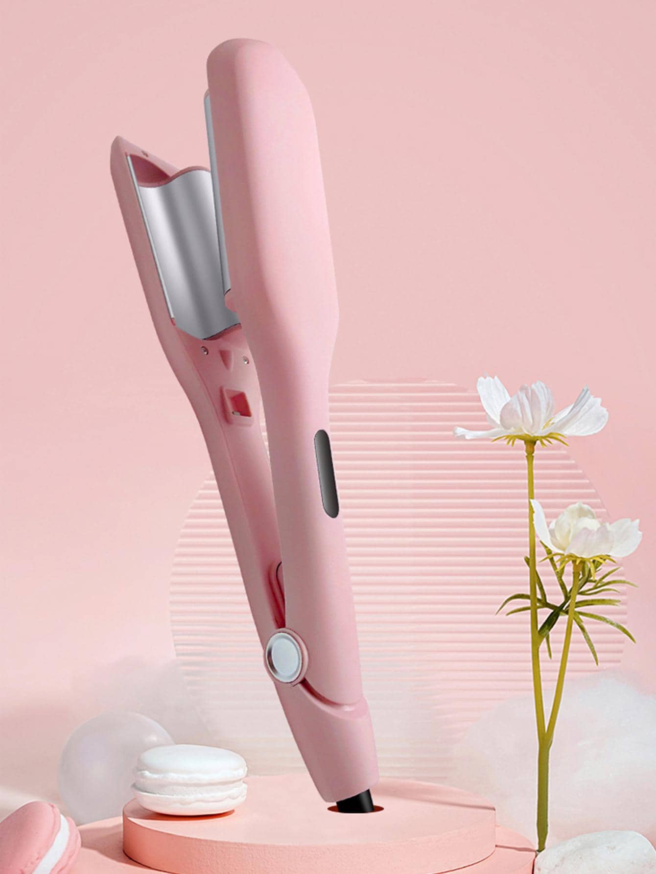 Modern Pink Professional Hair Curler For Hairdressing - 1pc ABS Curling Iron###Achieve salon-worthy curls with this modern pink professional hair curler. Made with high-quality ABS material, this 1pc curling iron is designed for easy and efficient hairdressing. The wall plug power supply ensures consistent heat for perfect curls every time. With ROHS, FCC, and UL certifications, you can trust in the safety and reliability of this hair curler. Batteries are not required or included, making it a convenient and eco-friendly choice for your hair styling needs.