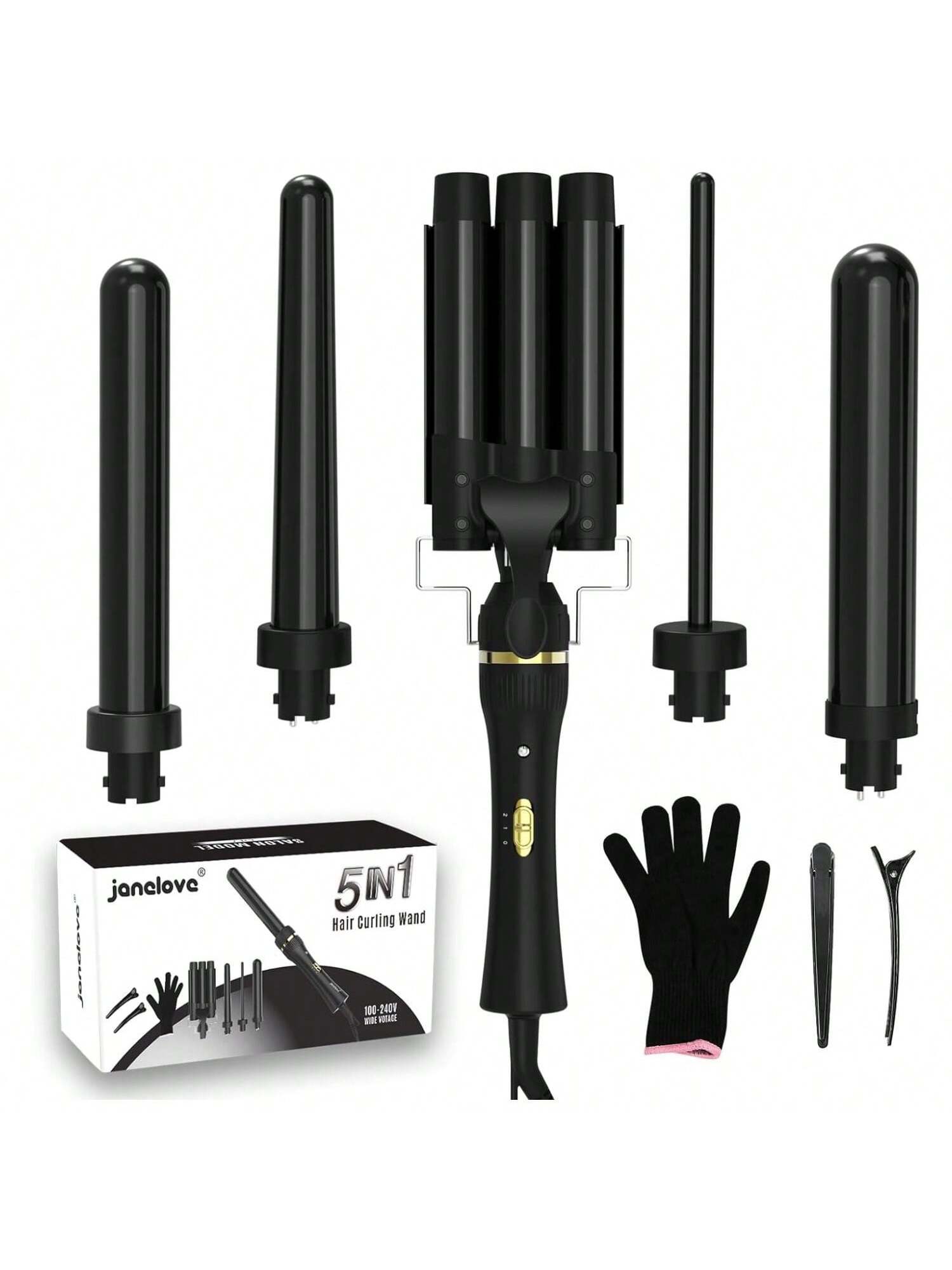 5 In 1 Wand Curling Iron, YONGSTYLE Hair Curling Wand Set With 3 Barrel Hair Crimper And 4 Interchangeable Ceramic Curling Irons 0.39 "-1.25", 2 Temps Fast Heat Hair Waver Curler For All Hair Type
