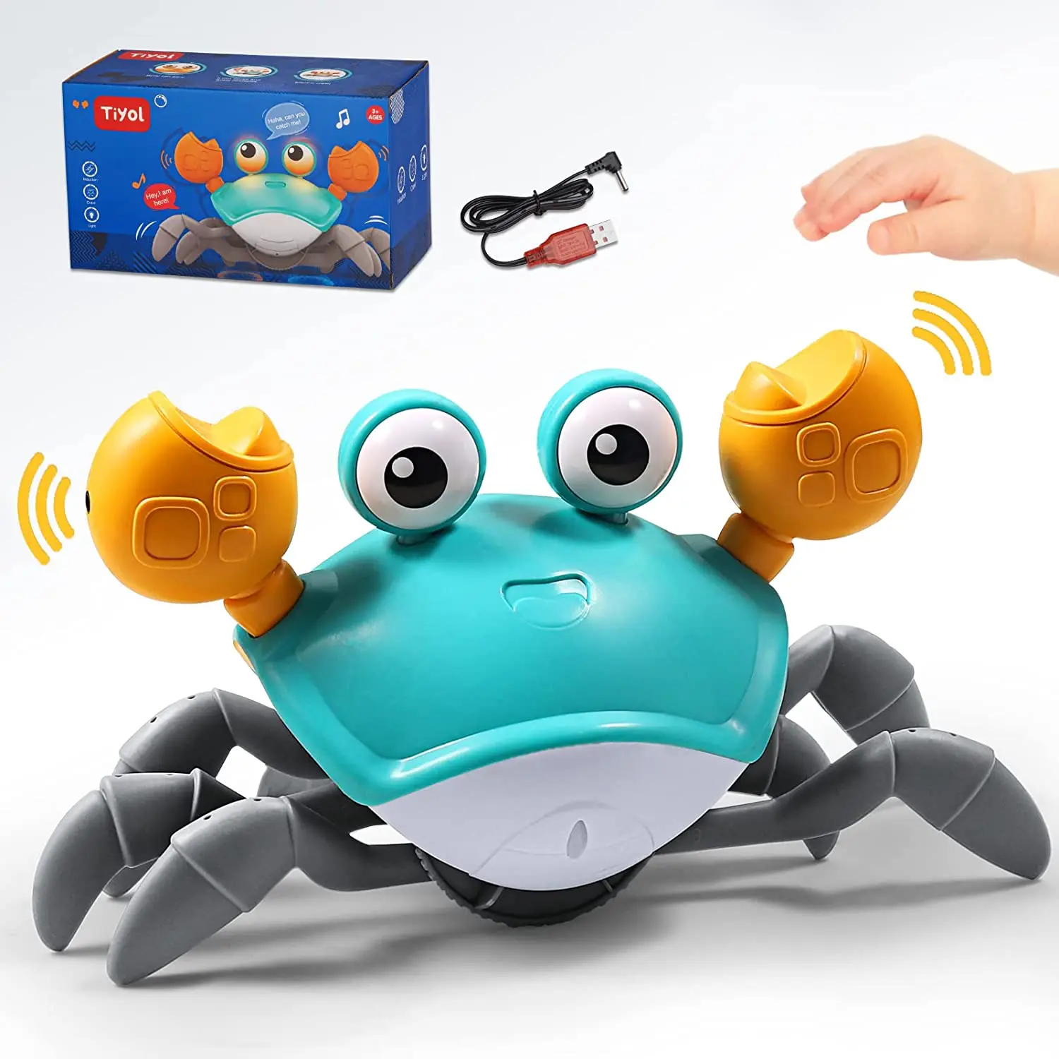 Baby Crawling Crab Musical Dancing Moving Toy Crab Toy Electric Baby Toy Crab Run Away with Music Led Light Up Interactive Gift