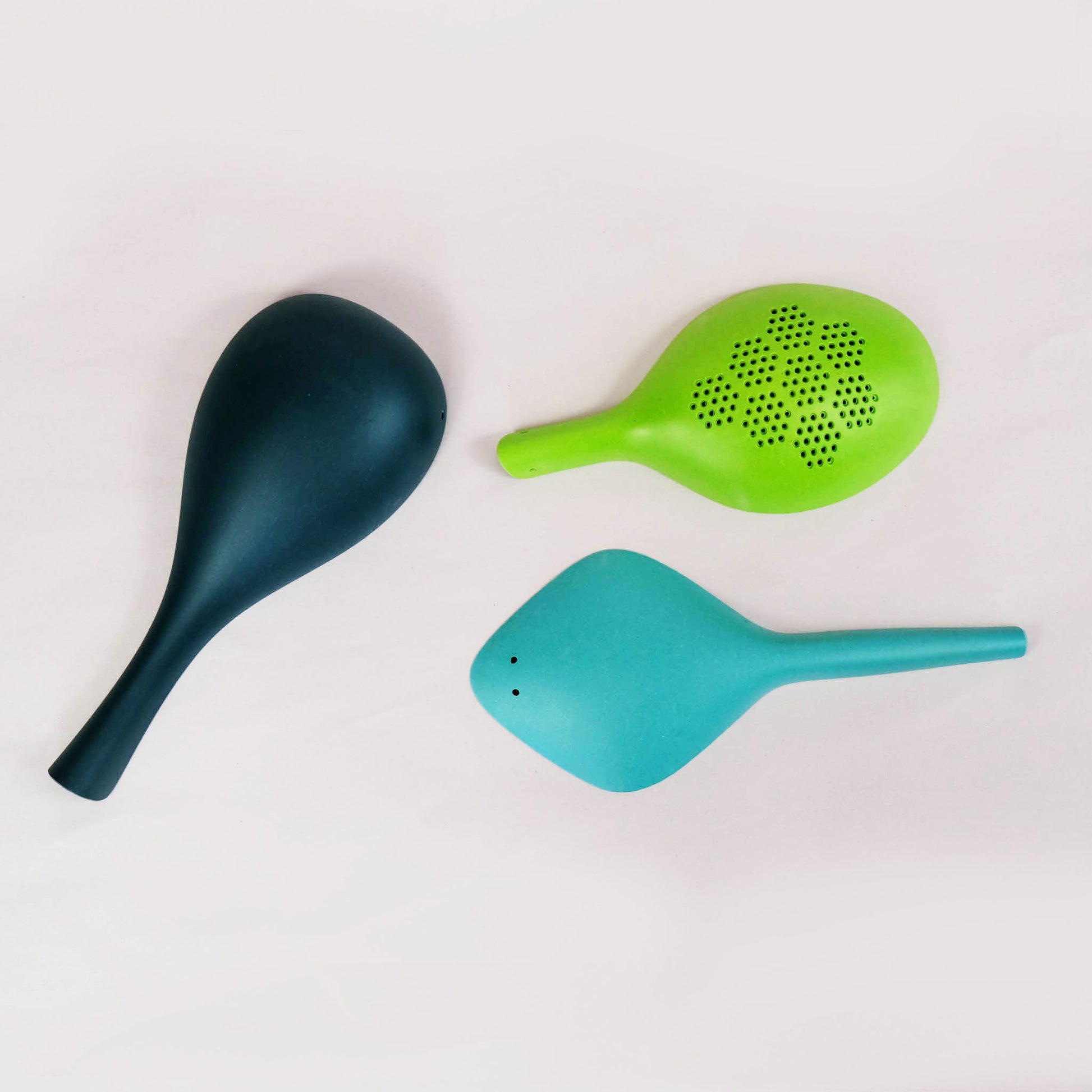 This 3-piece Sand Play Set consists of a Manta shovel (Ray), a Turtle Sifter (Shelley), and a Whale Scoop (Moby).
