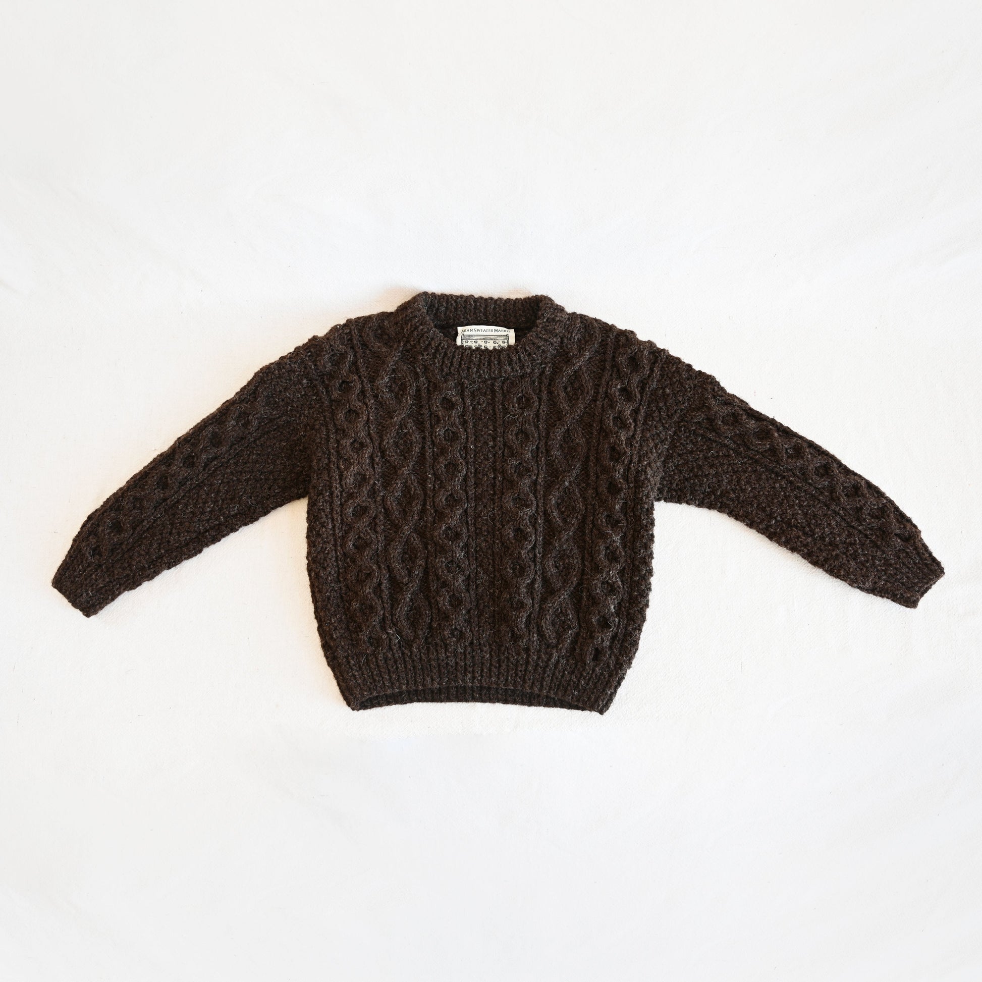 Vintage chocolate brown kid's Aran jumper. The Aran jumper is a style of jumper that takes its name from the Aran Islands off the west coast of Ireland.