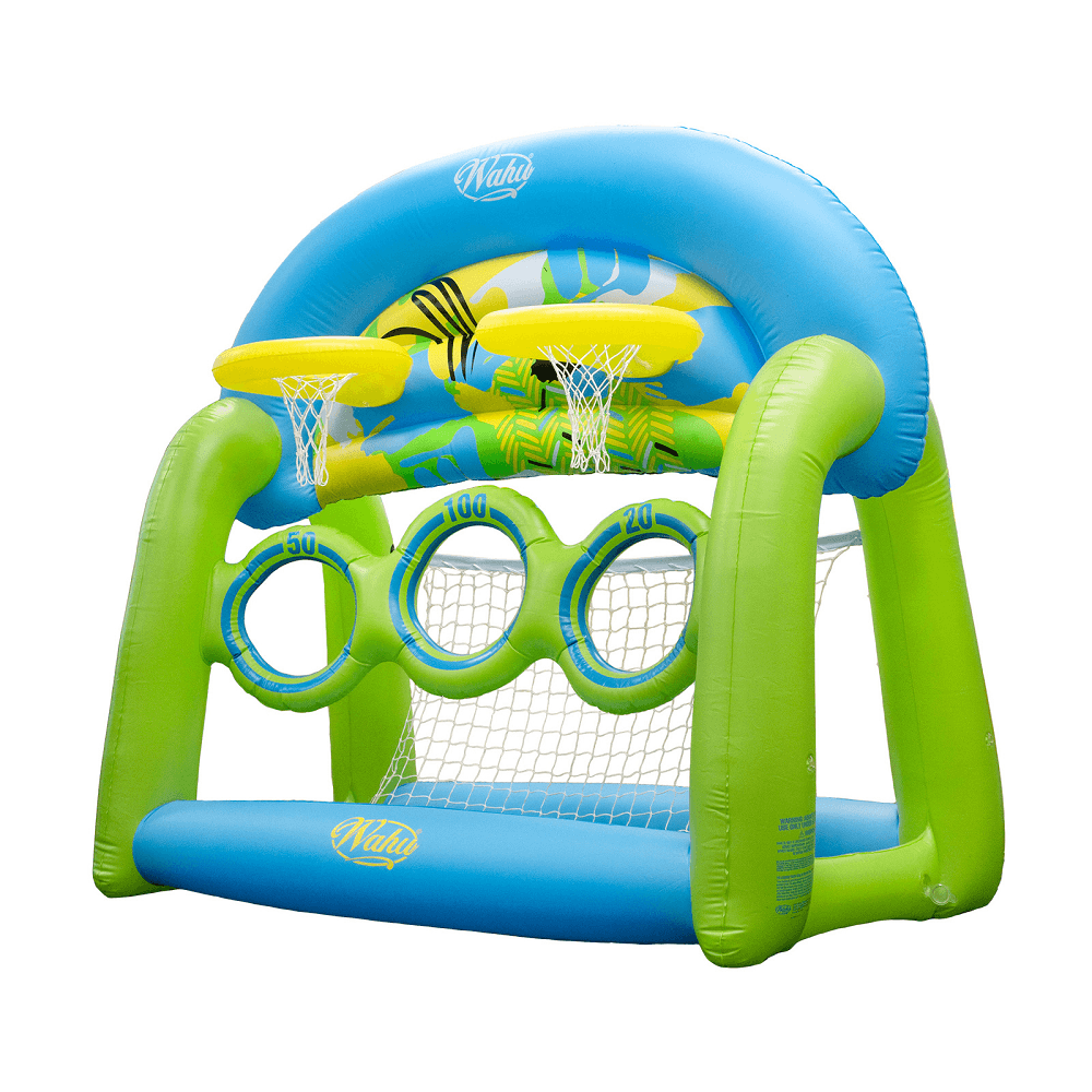 Featuring 2 basketball hoops, 3 circular skim scoring targets, a detachable net on the rear plus an 11cm ball, you'll be all set for summer!