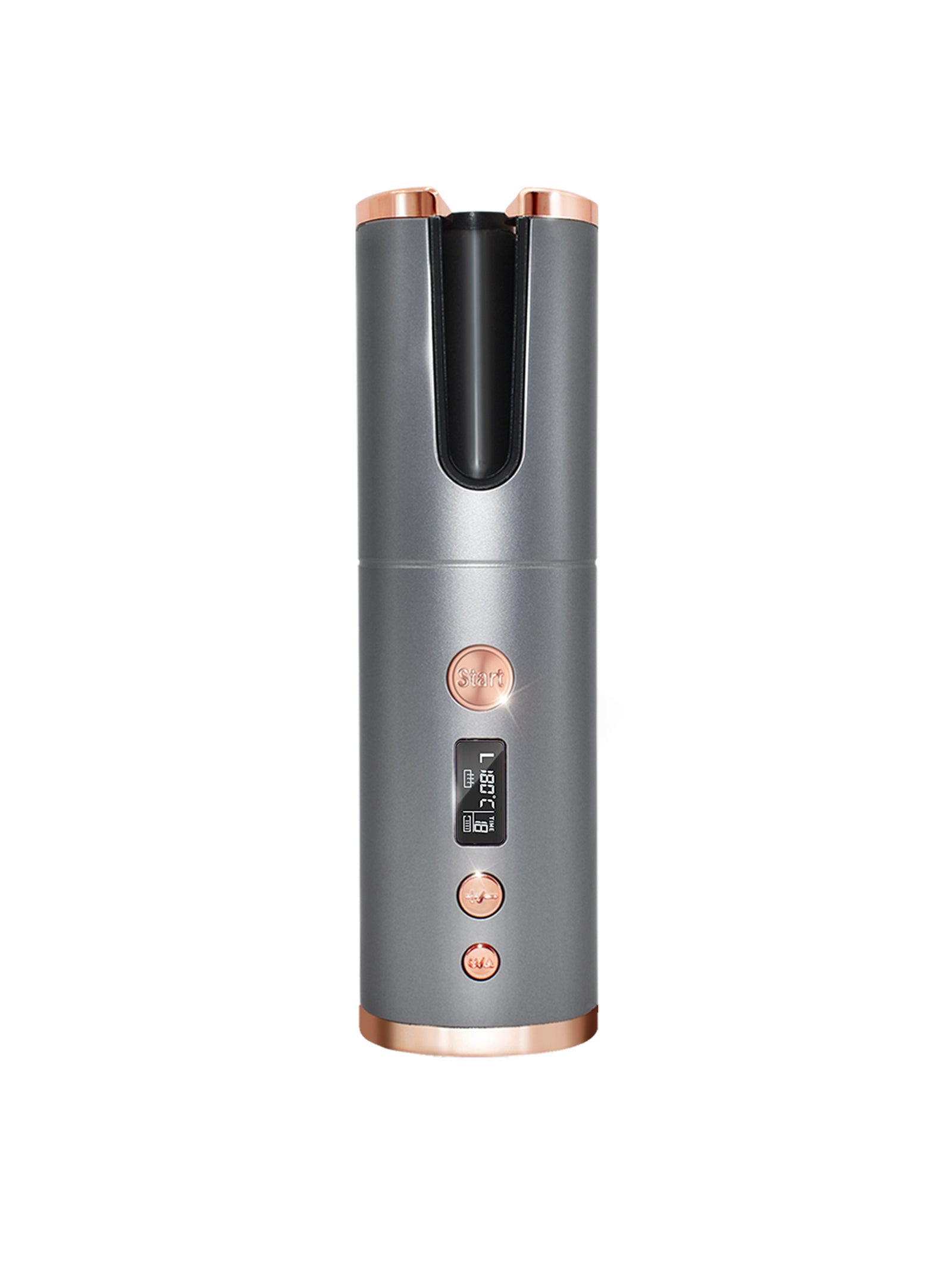 Wireless Automatic Rotating Curling Iron - Gray###Effortlessly achieve salon-worthy curls with our Wireless Automatic Rotating Curling Iron. The gray ABS material adds a sleek touch to your styling routine, while the battery-powered design (with included batteries) allows for easy on-the-go use. CE and ROHS certified charger ensures safe and efficient charging. Say goodbye to tangled cords and hello to beautiful curls with this must-have hair tool.